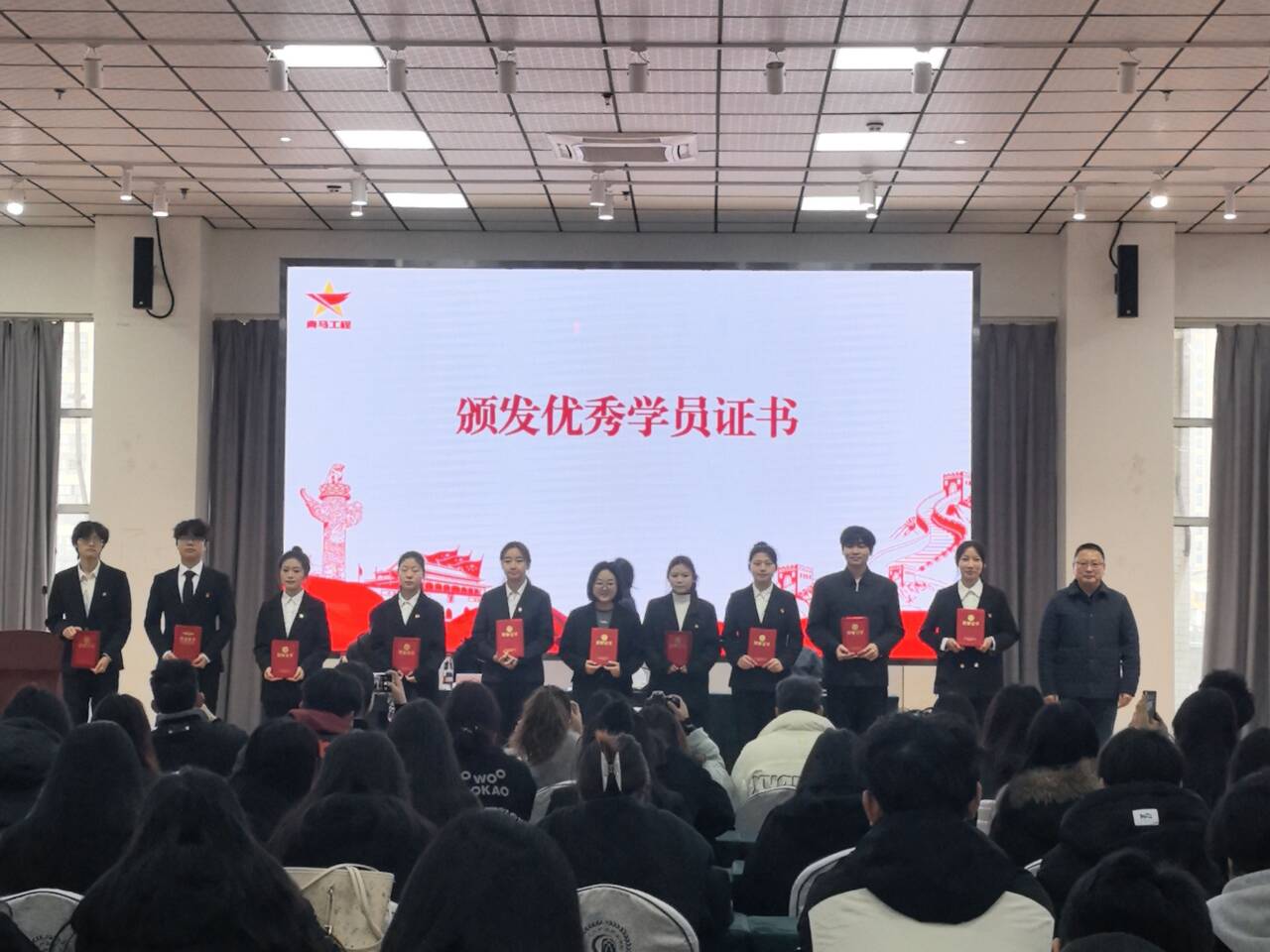 最后,结业典礼在《光荣啊,中国共青团!》嘹亮激昂的旋律中落下帷幕。至此,我校第十六期“青马工程”大学生骨干培训班的圆满结束,相信全体青马学员将以青春之我,在新时代的广阔天地中勇毅前行,用实际行动诠释青年担当,书写属于他们的青春华章!