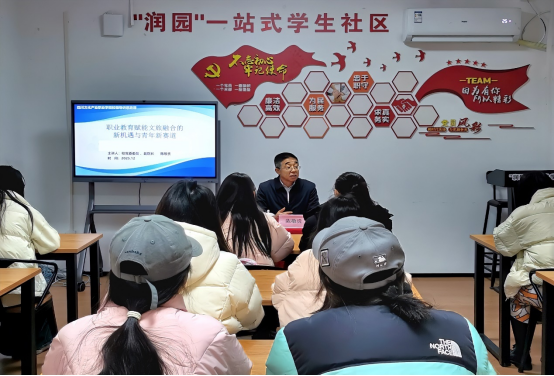 2025年12月24日,校党委委员、副院长陈敬贵在一站式学生社区讲授形势与政策课。陈敬贵副院长以“职业教育赋能文旅融合的新机遇与青年新赛道”为题,深入解读省委十二届八次全会精神,立足巴蜀文旅融合机遇剖析青年发展方向,并以文化产业管理与经营专业为例分享学习、就业新思路,引导青年学子拓宽成长视野、明晰职业发展方向。