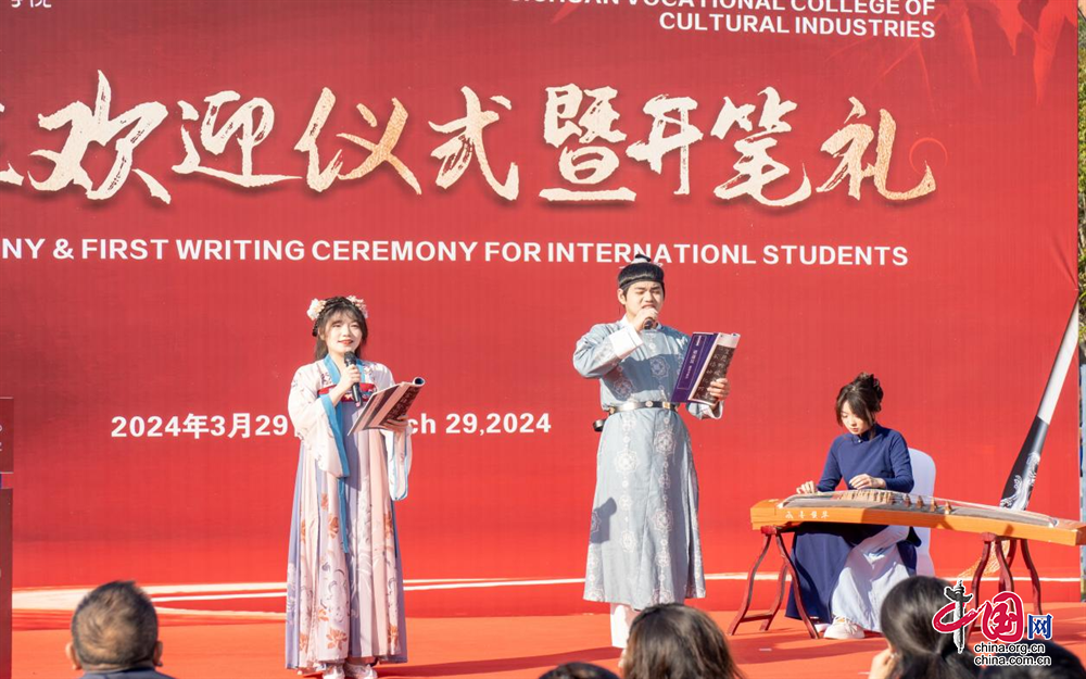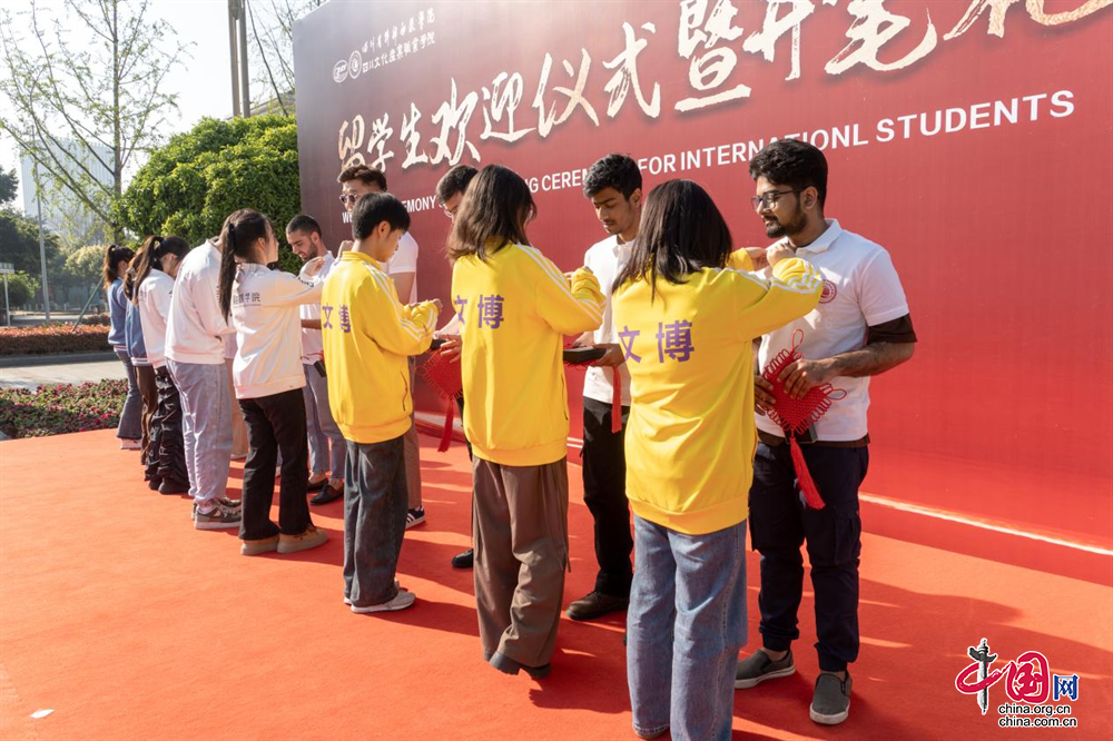 3月29日上午,四川省干部函授学院、四川文化产业职业学院首届汉语留学生入学仪式暨开笔礼在逸飞广场举行。该校党委副书记、院长罗晓东,副院长肖必恒出席此次活动。
