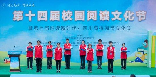 会上,校领导为荣获2023年度“阅读之星”的个人和“阅读推广活动”的先进集体颁奖。学生代表上台宣读全民阅读倡议书。四川文化产业职业学院相关职能部门]及教学单位负责人、教师代表、学生代表共120人参加开幕式。
