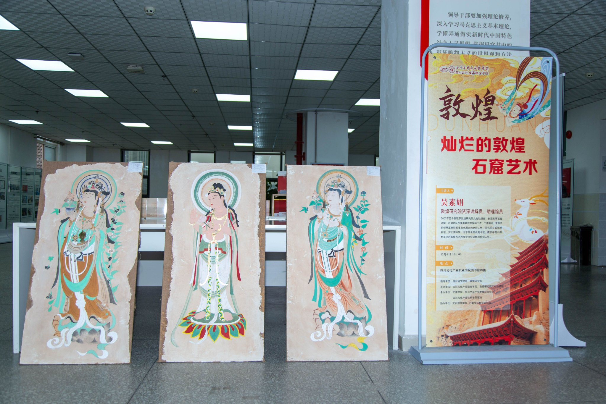 12月6日上午,由四川省文物局和敦煌研究院指导,四川文化产业职业学院和敦煌研究院文化弘扬部共同举办“灿烂的敦煌石窟艺术”主题讲座。校党委书记何迎晓、四川省文物局博物馆处(科技处)处长段炳刚出席,校党委委员、副院长陈敬贵主持讲座,学校师生代表300余人参加讲座。