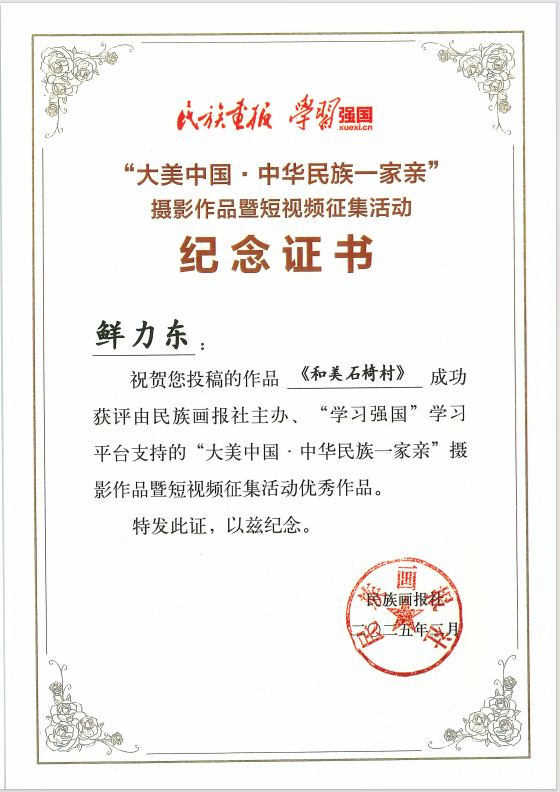 近日,在民族画报社主办、“学习强国”学习平台支持的“大美中国・中华民族一家亲”摄影作品暨短视频征集活动中,四川文化产业职业学院师生创作的《和美石椅村》短视频脱颖而出,获评优秀作品,并在全国党员教育的权威平台——“学习强国”学习平台发布展示。