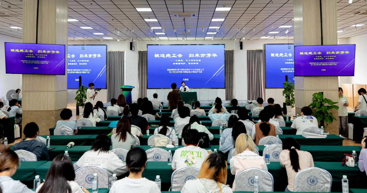 活动中,中国国家博物馆研究馆员马燕如作了“三星堆、江口沉银金银文物保护修复”的主题讲座。此外,还举行了文博学院师生教学成果展、课程思政教学展示以及文物修复虚拟仿真操作,拓片、蜀绣、珐琅制作体验等活动。
