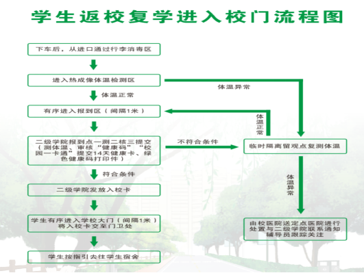 4、学生进入学生公寓时,宿舍管理工作人员进行再次体温检测,体温异常的按照学校防控工作流程处理。