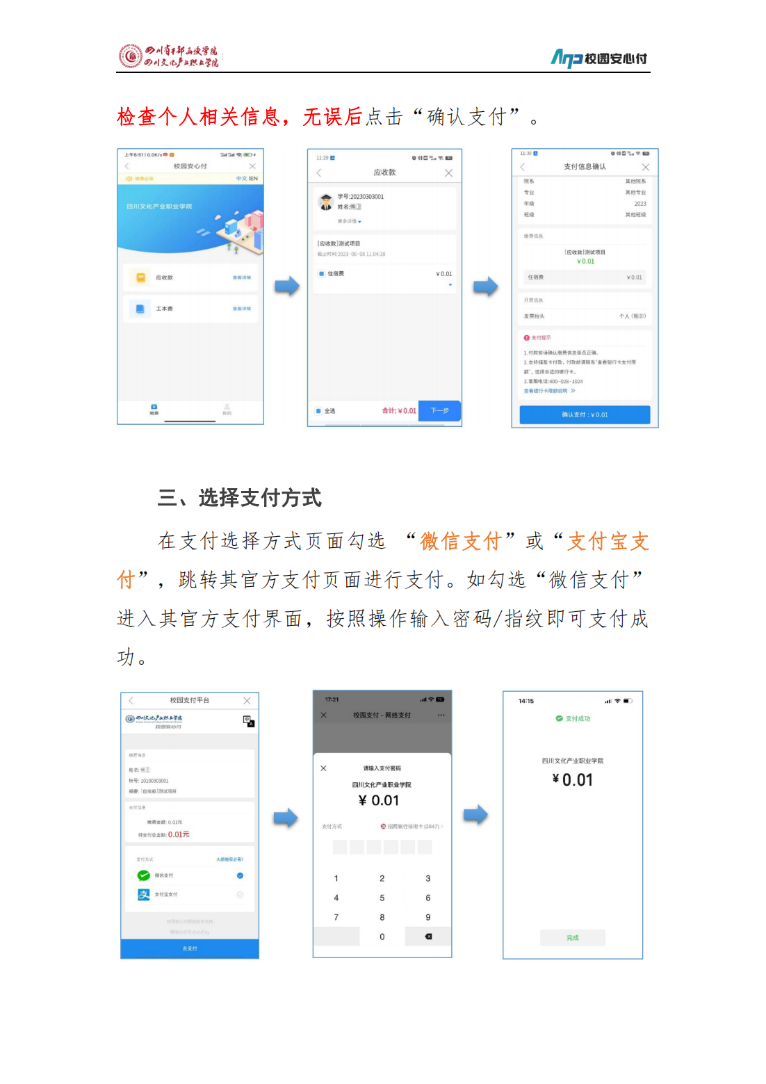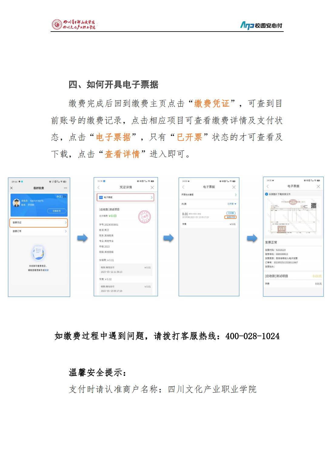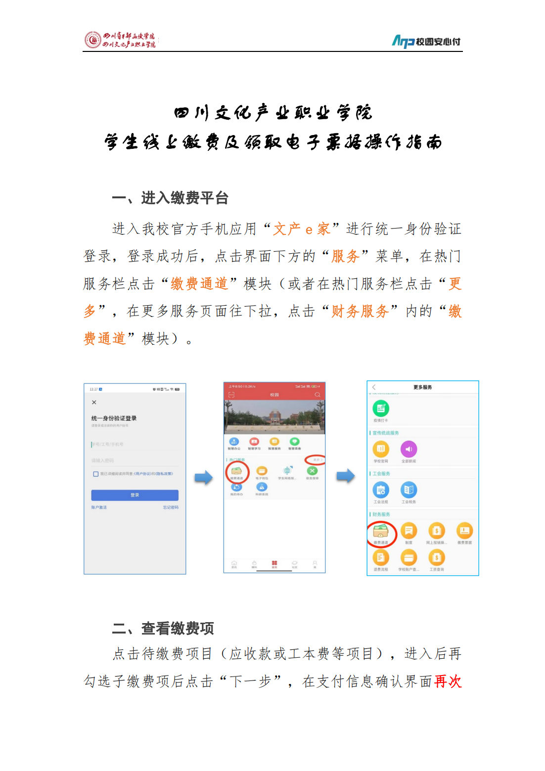 四川文化产业职业学院学生线上缴费及领取电子票据操作指南