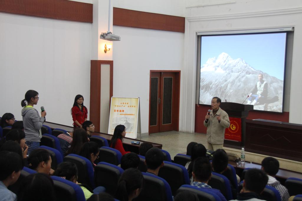 10月16日晚,在我校第二教学楼105多功能厅,享受国务院政府特殊津贴待遇的中科院成都分院生物所研究员印开蒲为我校师生带来了一场名为“百年追寻——见证中国西部环境变迁”的精彩讲座。
