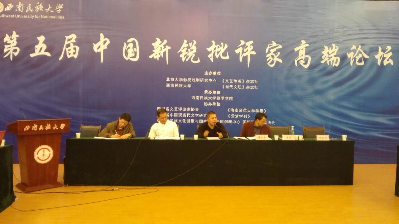11月14至15日,“第五届中国新锐批评家高端论坛”在西南民族大学举行。本次论坛由北京大学影视戏剧研究中心、四川省文艺评论家协会、《文艺争鸣》杂志社、《当代文坛》杂志社主办,来自北京大学、北京师范大学、南开大学、武汉大学、华侨大学、中山大学、四川大学、陕西师范大学、海南师范大学、中南大学、四川省社会科学院等全国30余名专家学者齐聚西南民族大学,围绕“中国多民族文学与文化认同”、“当代作家的文化身份与文学史叙述问题”展开讨论,砥砺学术,激荡思想。