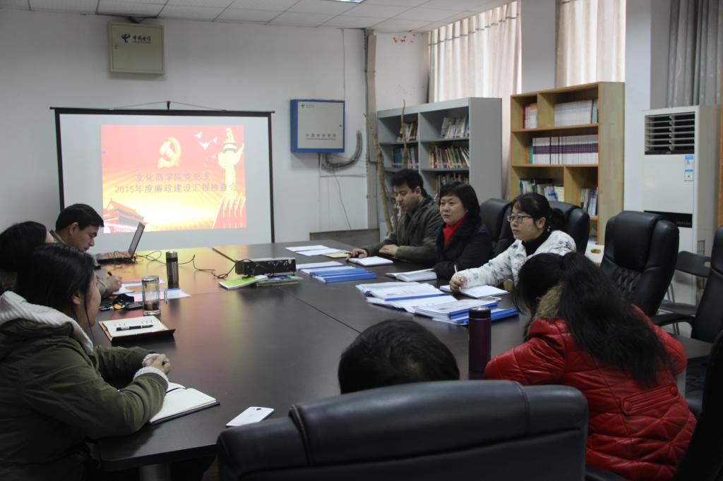 学院党总支书记宋晓代表学院作2015年度党风廉政建设责任制建设情况汇报。他从加强廉政教育、落实“一岗双责”、实行责任追究、开展纠风工作、强化作风建设等五个方面详细介绍了学院在2015年度贯彻落实省委、学校党风廉政建设责任制的工作开展情况。他表示学院今后要着重抓好“责任分解、责任考核和责任追究”三个环节的工作,不断深化党风廉政建设责任制,不断提升工作质量和效率,为省级示范项目和重点专业建设做好保障,着力打造办学特色鲜明的文化商学院。