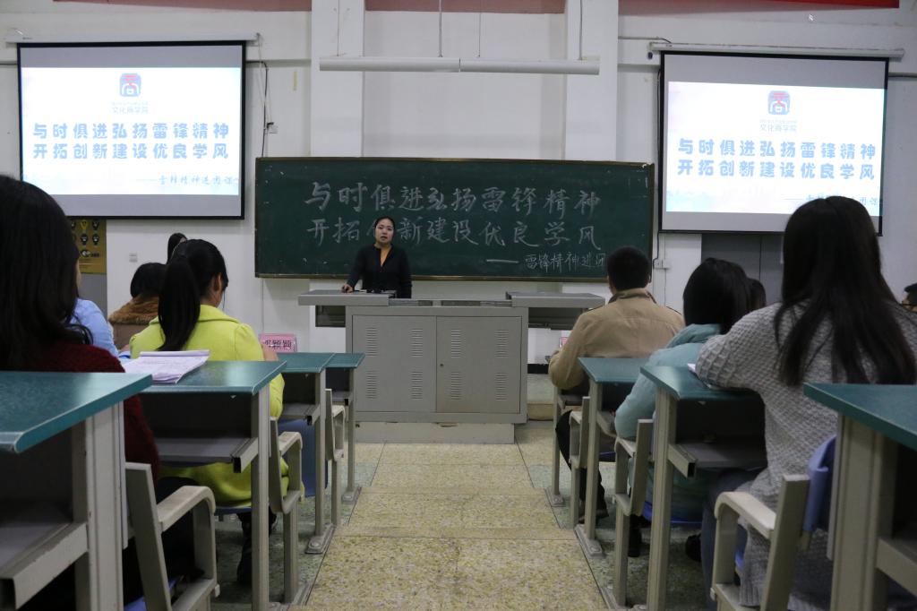 近日,我院团学组织于第二教学楼106教室开展了以“与时俱进弘扬雷锋精神,开拓创新建设优良学风”为主题的雷锋精神进团课活动。我院党总支副书记邓颖颖、分团委书记吴燕霞、辅导员王玮、罗婷婷以及团学组织全体成员参加活动。