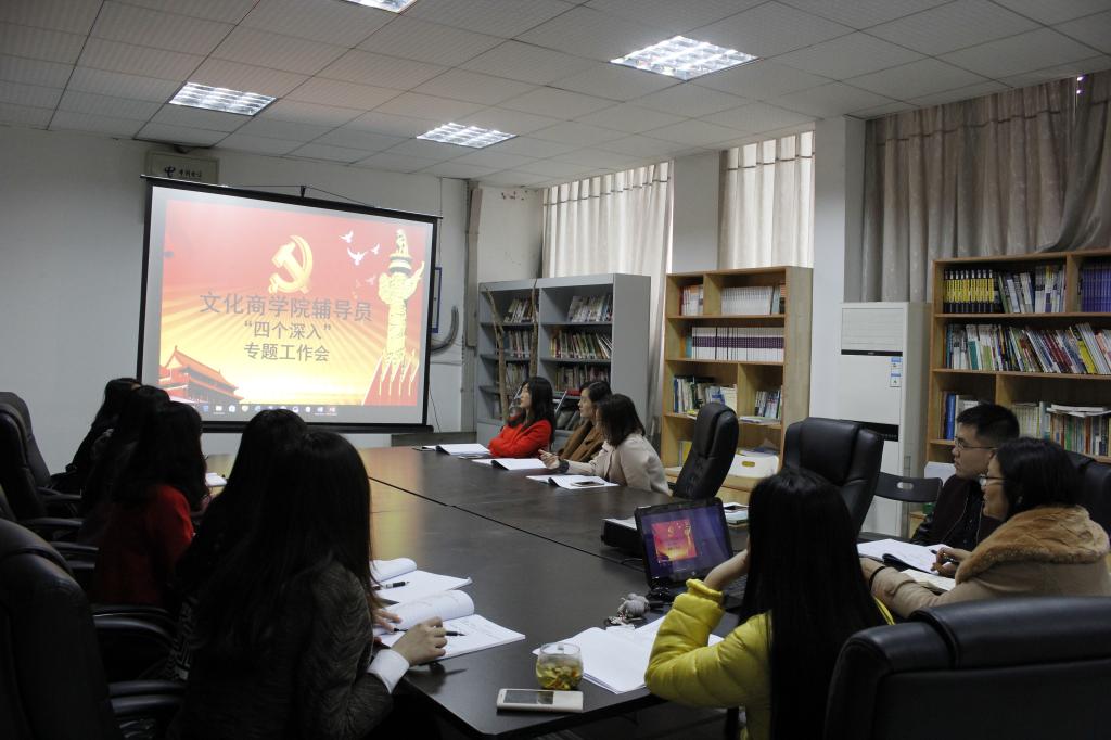 文化商学院在全院辅导员中开展“四个深入”专题工作,将“深入学生课堂、深入学生宿舍、深入学生网络、深入学生社团”四项具体内容融入到辅导员日常工作,对查课、听课、与任课教师交流、与学生交谈、寝室检查、网络线上线下互动、社团创新等方面的工作提出了指标性的具体要求。
