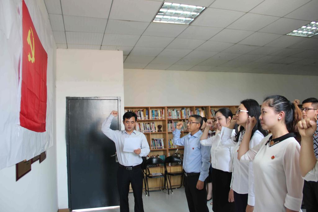 奏唱《国际歌》后,宣誓仪式正式开始。宋晓带领新老党员进行宣誓。老党员代表陈鑫、冯丽娜先后发言。她们重温了入党志愿,对照入党誓词,找出自己的差距,并表示要恪守对党的承诺,更加严格要求自己。预备党员代表杨萌、赵茂阳也进行了发言,表达了争做合格党员的决心。