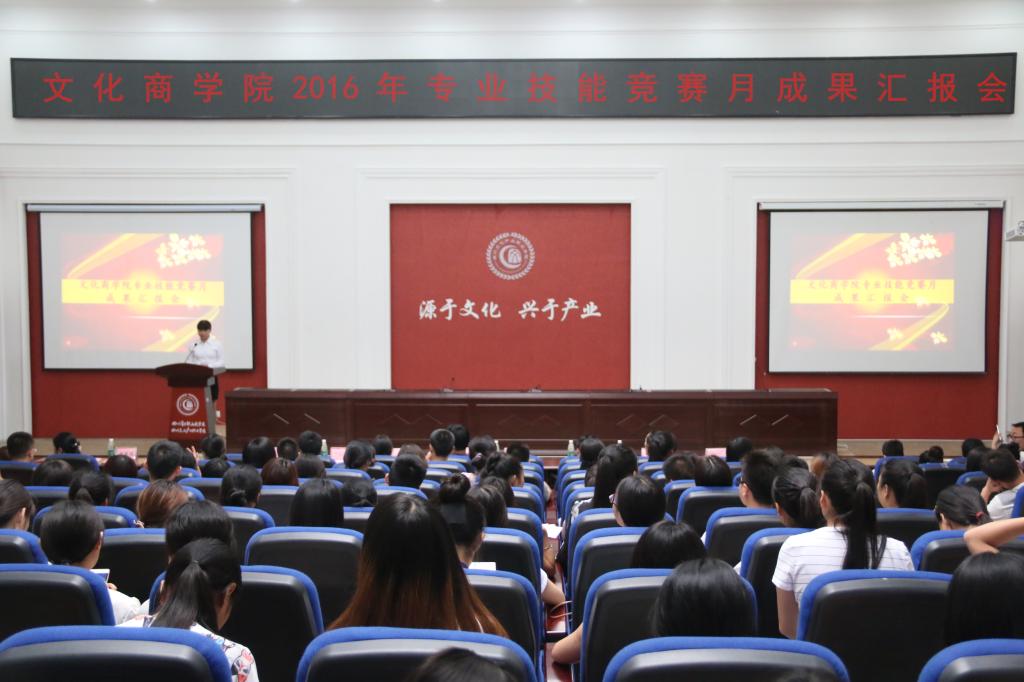 首届创客创业项目展览会暨综合商品联展、第五届会计技能点钞大赛、第四届营销大赛分别作了成果汇报。为期两天的首届创客创业项目展览会暨综合商品联展从5月10日启幕,包含了前期策划、动员大会、线上线下推广会、宣讲会、展位搭建、开幕式舞台搭建等环节,展览总面积达1500平方米,成交额3万余元,总人流量达6000余人,参展商35家,总商品数达8000件,文化创意产品占全部商品的70%。展会指导老师曾兴结合文化创意产品科学划分展品区域、加强展后评估等方面作了工作汇报。