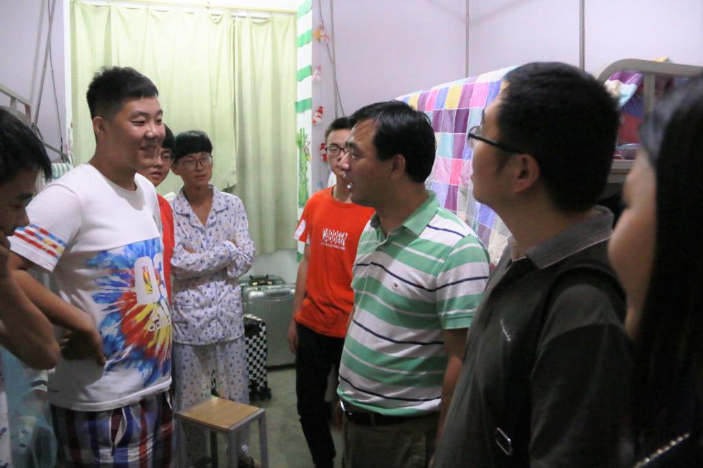 宋晓一行人先后走访了11号楼和9号楼。每到一个宿舍,领导们都亲切地同新生交谈,了解大家到校后的适应情况及遇到的实际问题,告诉同学们遇到困难一定要及时联系辅导员、宿管人员和领导,大家会尽一切努力去帮助同学们解决。他还提醒新同学们注意寝室用电安全、宿舍安全和个人财产安全。同时,他希望大家都能大胆地提出对学院意见和建议,更好地促进学院的完善和发展;希望寝室内形成互相帮助,团结友爱的良好作风,更好地进入角色。宋晓还希望大家制定好自己的学习计划和成长计划,利用在大学三年的时光,让自己变成一个对社会有用的人。