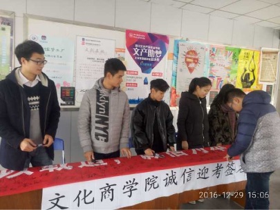 为加强学风建设,营造良好的考风、学风,12月30日,文化商学院在第三教学楼开展了诚信迎考签名活动。