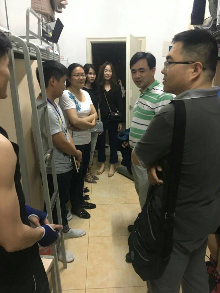 走访结束后,宋晓和辅导员进行了交流,要求辅导员对同学们进行积极引导,多肯定和鼓励,弘扬正能量,大力倡导勤奋学习,刻苦求知的优良学风,希望老师们积极工作,不忘初心。最后他向奋战在一线的学工老师和宿管委的同学们表示了慰问。