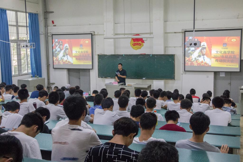 为响应国家号召,坚定大学生参军报国的理想信念,激发我院学生参军热情,做好2017年应征入伍宣传动员工作,我院于近日在第二教学楼104开展了征兵宣传动员宣讲。学院党总支副书记焦健、分团委书记吴燕霞及全院有参军意愿的学生参加了活动。