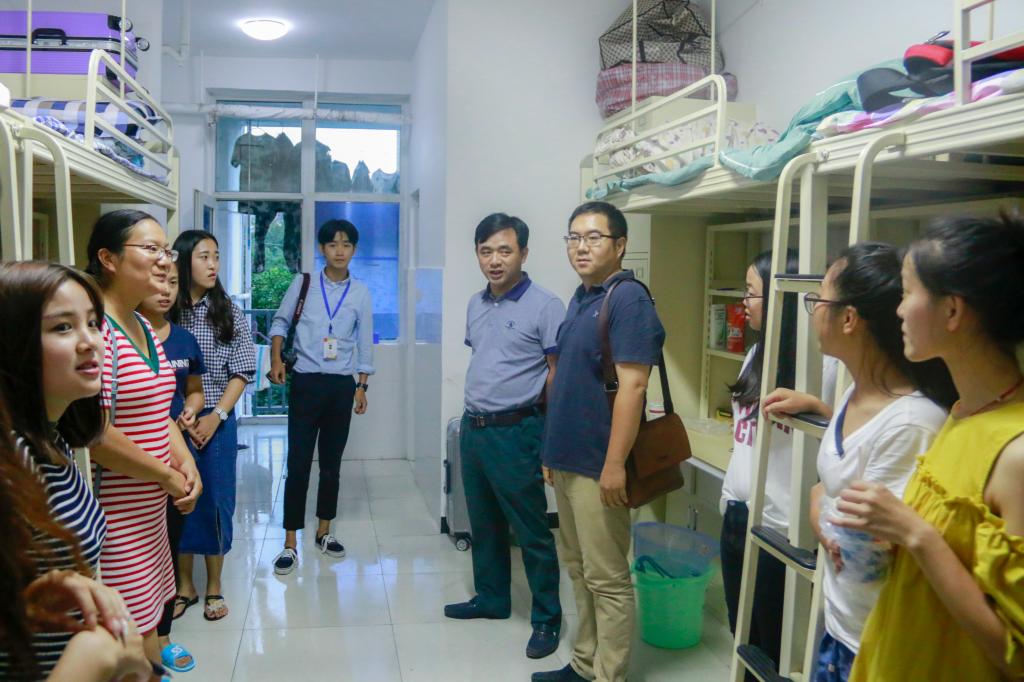 另外,为了让新生更快适应大学生活,6日晚,我院院长宋晓,党总支副书记焦健,分团委书记吴燕霞及新生辅导员走进学生宿舍,看望2017级新生。宋晓代表学院向新同学们表示问候,并与同学们进行热切交谈。在走访过程中,院领导及老师们详细询问了新生到校后住宿、生活等方面的情况,叮嘱同学们要养成良好的生活习惯,学会自我管理,增强安全意识,在遇到问题时及时与老师、同学进行沟通和交流,温暖亲切的交流让新同学们感受到了学院对大家的关怀和爱护。