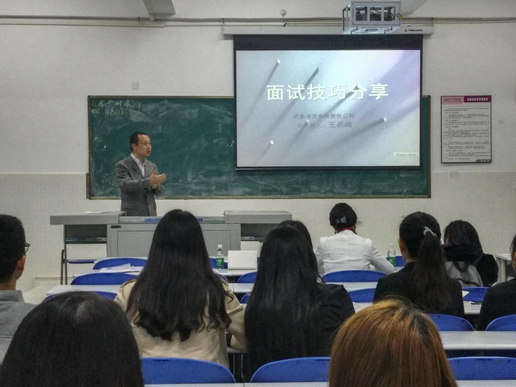 而在模拟招聘板块,主评委则请到了我院校企合作单位成都漆器厂的王岳峰先生担任。他根据学院的专业特色,设计了相应的岗位进行模拟招聘,并在活动中对8名模拟应聘者一一点评后,最后,他总结出同学们应聘时应注意的三个问题:尊重、坦诚与自信。