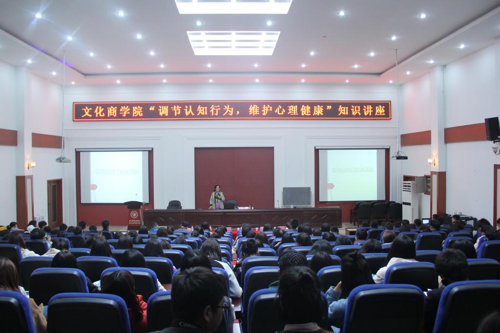 为帮助同学们提高心理认知能力,以健康的心态适应校园生活与社会环境,近日,我院在二教105开展“调节认知行为,维护心理健康”主题讲座。本次讲座邀请到成都市应用心理研究会副会长吴斯达女士担任主讲人。文化商学院院长宋晓、党总支副书记焦健、学生科负责人吴燕霞,全体辅导员老师以及200多名学生参与此次活动。
