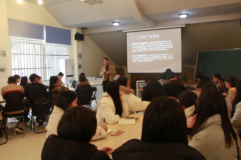 杨永忠教授首先从宏观变革、微观变迁两方面介绍了文化产业兴起的原因,讲述了创意产业理论从文化产业理论到文化经济理论的演进过程,介绍了他在创意管理学上进行的探索,并对创意管理学有待研究的系列问题进行详细讲解。在专题讲座结束后,杨永忠教授与学院专职教师代表进行了专业交流,讨论关于第二次文艺复兴,如何将艺术学融入文化产业课程,文化企业家等专业教学话题。