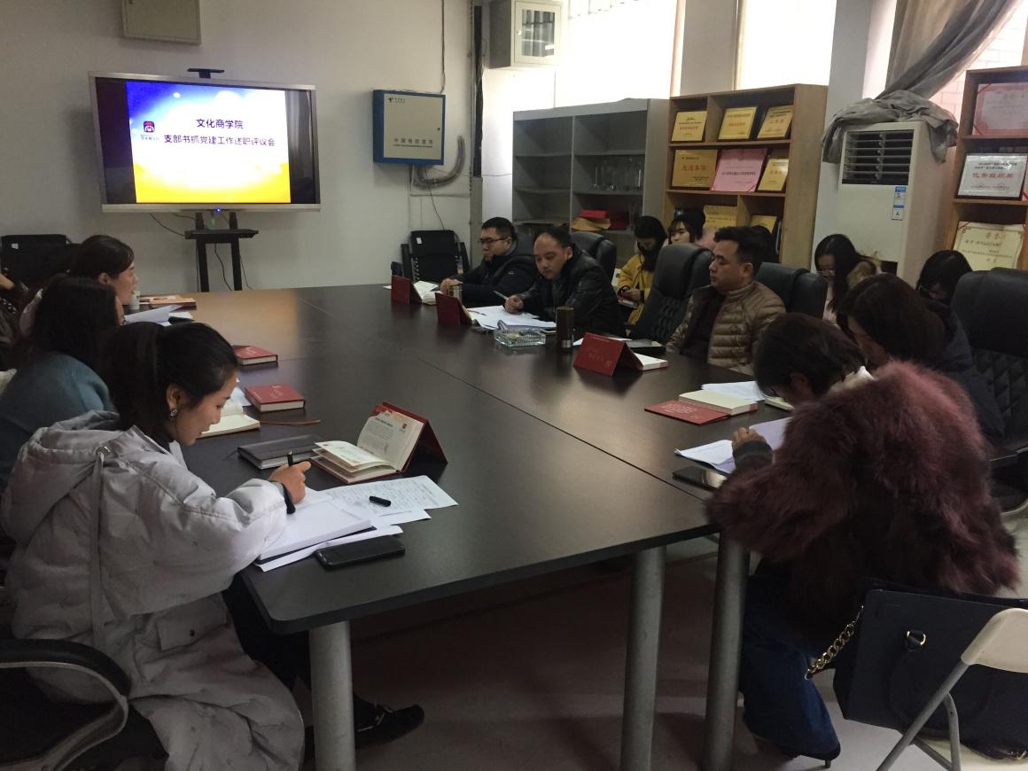 1月8日下午,文化商学院党总支在第二教学楼四楼会议室召开2017年度支部书记抓党建工作述职评议会。文化商学院全体党员及入党积极分子参加会议,会议由学院党总支书记陈吕容主持。