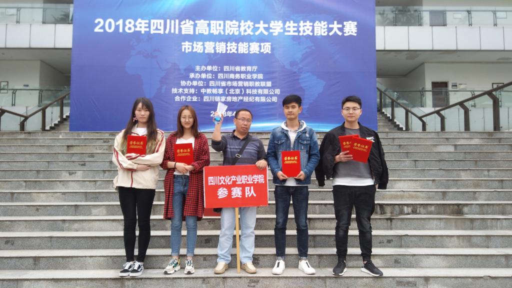 4月14-15日,2018年四川省高职院校市场营销技能大赛在四川省商务职业学院举行,本次大赛由四川省教育厅主办,共有来自全省38所高职院校代表队参赛。我校文化商学院16级市场营销专业四名同学在指导教师伍大勇的带领下代表学校参赛,参赛队员团结协作、配合默契,发挥出较高水平,在38支参赛队伍中位列第五名,荣获二等奖。