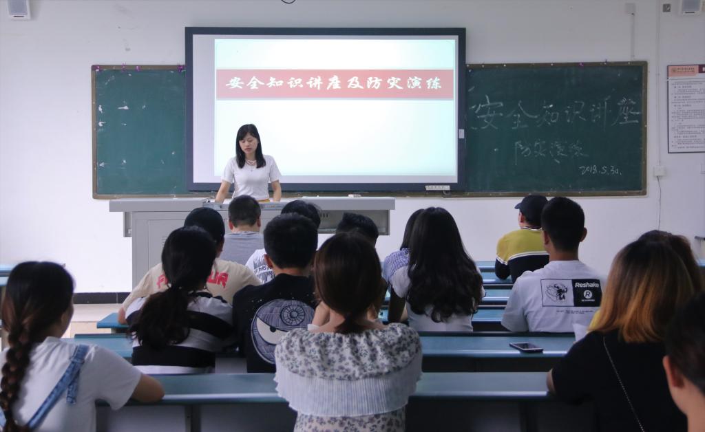 此次培训,学院安全员黎孟奇老师从校园网络安全、交通安全、食品卫生安全等方面进行防灾减灾教育。并组织各班安全委员及干部代表观看了火警视频,使同学们了解到灾害发生时应如何自救等知识。培训结束后,安全应急疏散演练正式开始。随着一声哨响,同学们在老师的指导下,迅速、有序的跑出教室,在图书馆门口集合。