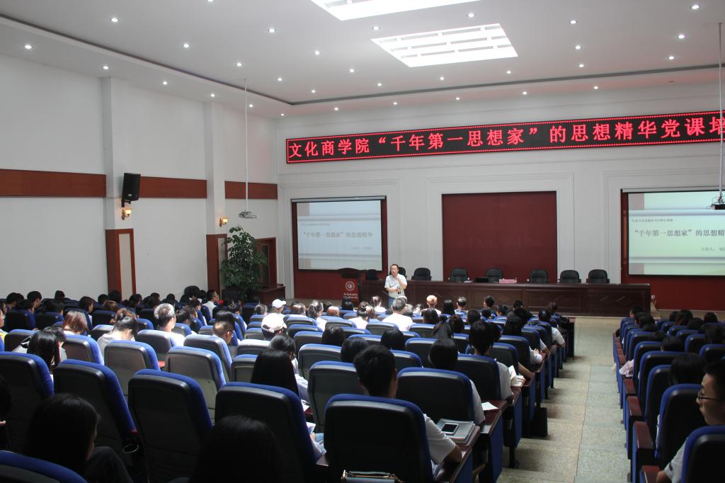 为纪念马克思诞辰200周年,进一步提高广大团学干部及学生理论水平和实践创新能力,6月8日下午,文化商学院在二教105举行了以“千年第一思想家思想精华”为主题的党课培训。本次特邀四川中小学教师师德研究中心理论研究部主任钱国君博士担任主讲人。我院学生党支部及200名青年学子积极参加培训。