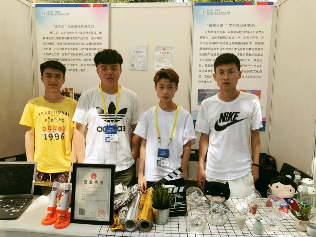 经过两天的作品展示、路演汇报等环节的激烈角逐,文化商学院16级文经专业全称专业学生郭沛陇、曹悦、李双江、李小雷申报的优秀创业项目《“醉美丝路+”文化创意商品开发项目》、《“锡工坊”文化创意商品开发项目》从全省众多参赛作品中脱颖而出,分获大赛铜奖。