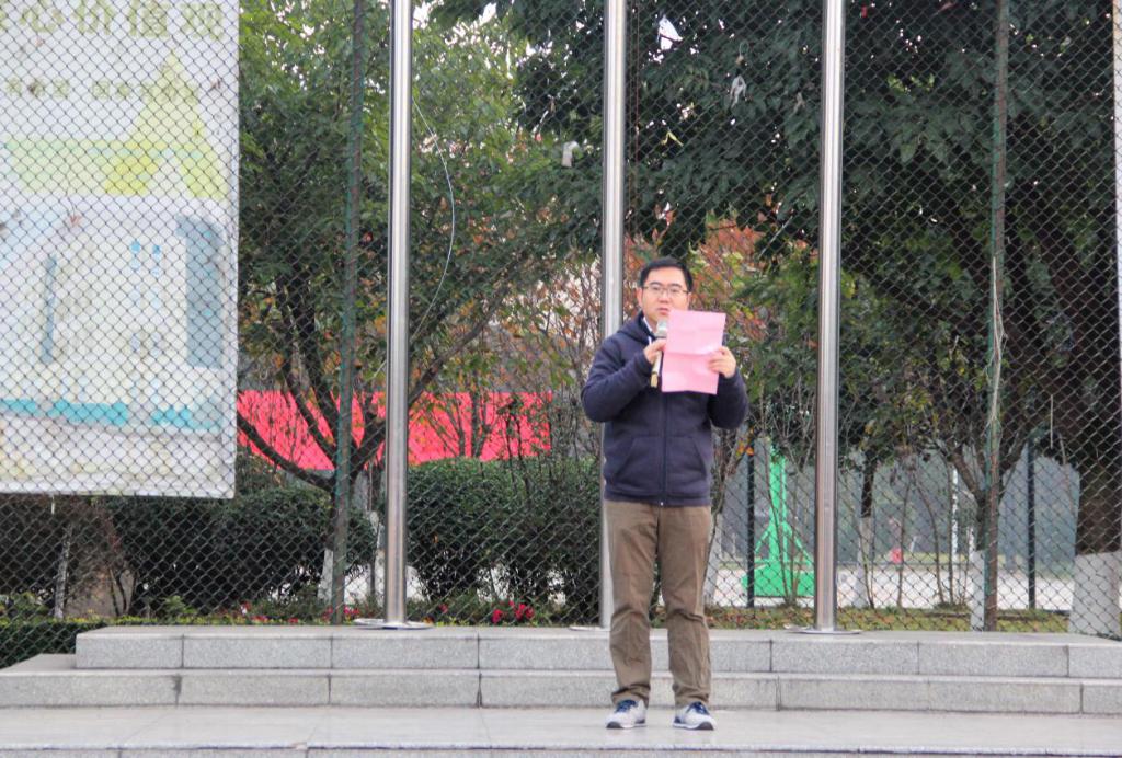 清晨7:30,当国歌奏响,在场师生庄严肃立,向冉冉升起的五星红旗行注目礼。文商学院党总支副书记焦健发表主题讲话,他说,今年是我国改革开放四十周年,四十年铸梦辉煌中国。他希望文商学子热爱祖国,忠于人民;坚定信念,胸怀大志;勤奋好学,刻苦钻研;全面发展,奉献社会。在奋斗中释放青春激情、追逐青春理想,以青春之我、奋斗之我,为民族复兴铺路架桥,为祖国建设添砖加瓦。