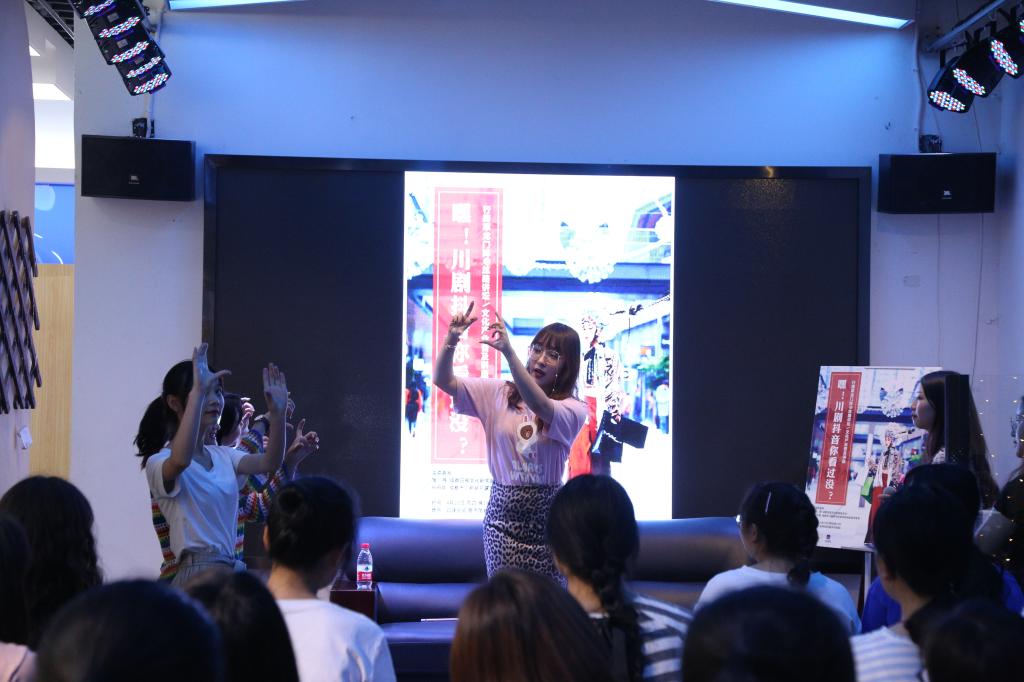 在沙龙活动中,首先由祝丹妮专员向同学们普及了川剧基本知识与发展现状,然后由蒲薇主任介绍了项目策划的缘起与目的,分享了她关于用新媒体来进行“非遗活化”的思考,并就如何进一步增强短视频传播效果与同学们进行了互动讨论。沙龙座谈期间,短视频中的川剧演员陈兰馨进行了川剧现场表演,而项目组的视频剪辑师钱虹辰也分享了他关于摄像和剪辑的心得。