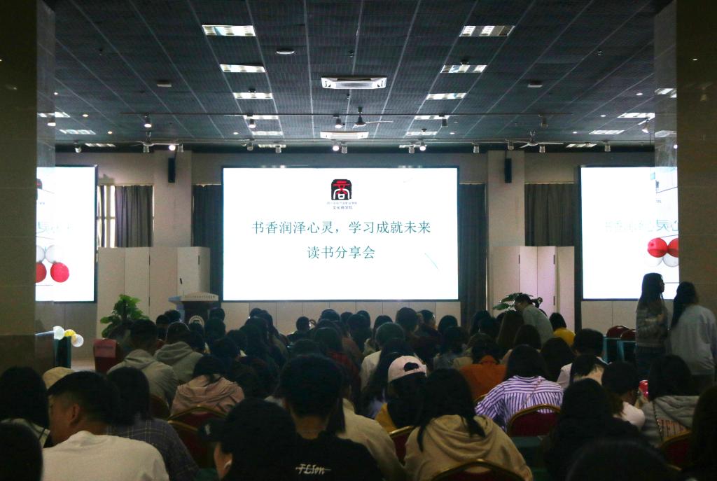 为进一步打造书香校园,提升我校学子的人文素养。由文化商学院举办的读书分享会于5月29日下午在我校图书馆四楼开展。此次活动邀请了文化商学院党总支副书记焦健、学生党支部书记吴燕霞、学院副教授刘晓远以及王江泽、郭发瑶、胡如光三名优秀学生代表作为本次的分享嘉宾,各专业辅导员和同学们共400余人参加。