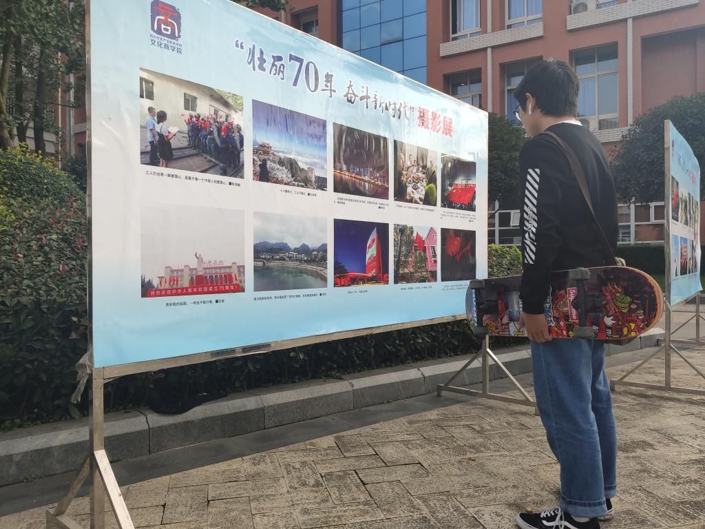 为深入学习领会党的十九大精神,用习近平新时代中国特色社会主义思想铸魂育人,培养和塑造新时代青年的品德、志向,文化商学院于11月4日至6日举办了“壮丽70年,奋斗新时代”主题摄影展。