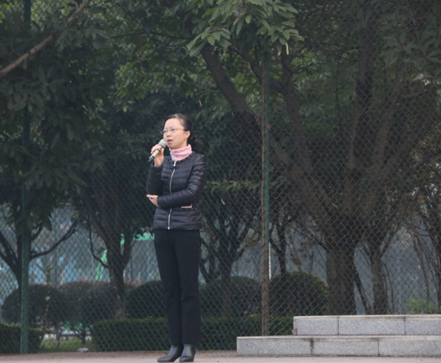 早上7:30升旗仪式正式开始。国旗护卫队迈着整齐有力的步伐走向舞台中央,他们精神抖擞,英姿飒爽。随着鲜艳的国旗冉冉升起,现场全体师生严肃立正,向国旗行注目礼、齐唱国歌,气氛庄严热烈。随后,由学生代表郑淇进行“我与祖国共奋进”主题演讲。她分别从大学生的理想信念、责任担当、个人素质与修养等方面做了陈述,倡导同学们在大学里抓住机遇,挑战自我,做一个全面发展的优质新青年。