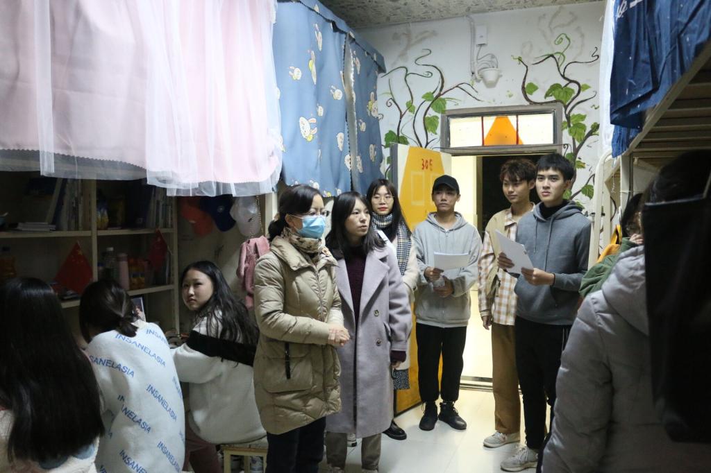 为了更加了解同学们的学习生活状况,引导同学们积极参与学院公寓文化节活动,11月23日晚,文化商学院党总支副书记王维姝、部分辅导员老师及我院生活权益部学生干部深入学生公寓7号楼和13号楼,了解和关心同学们装扮寝室的创意想法并对我院模范寝室进行了点评。