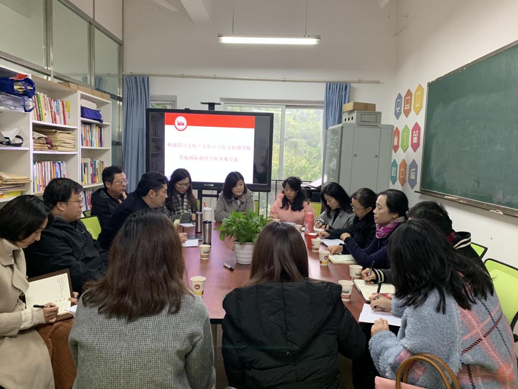 12月2日下午,文化商学院党总支书记、院长黄萍,副书记王维姝一行8人前往成都职业技术学院学习交流,受到该校国际商贸学院党总支书记、院长钟林和相关专业负责人、科室负责人的热情接待。