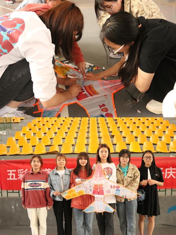 中午12:30,11支活动团队聚集于艺体中心。院学生会生活权益部长宣读了风筝节流程及规则之后,各团队迅速投入到紧张有序的准备活动当中。同学们个个插上了想象的翅膀,“我爱中国”、党旗党徽、卡通人物、花草动物……大家用五颜六色的画笔在风筝上勾勒出自己喜爱的图案,涂上绚丽的色彩。同学们分工合作、各展身手,有负责手绘的,有负责涂鸦的,有负责龙骨DIY制作的……经过45分钟的现场协作,11个团队全部按时完成手工风筝的现场制作。随后全体队员手持精美的风筝走向足球场如期放飞。明媚的阳光里,同学们自由奔跑的身影和千姿百态的风筝飘舞在蓝天中别有一番趣味。经过评选,“社会主义接班人”小组的作品“红船·抗疫”、“随风梦想”小组的作品“党史永向前”、“村岗生产队”小组的作品“时刻跟党走”分别获得了一、二、三等奖。