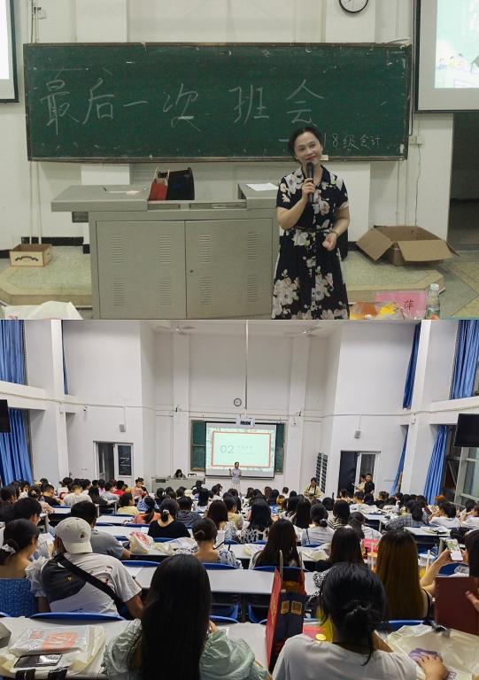 2021年毕业季时值党的百年华诞,学院围绕“百年新征程 青春再启航”主题,策划开展了“五个一”毕业生离校教育活动:开一场毕业主题班会、写一句对党的祝福语、参加一次“爱心不毕业”公益活动、留一间整洁寝室、发一份文明离校倡议书。学院负责人、专业负责人和老师代表参加了各专业毕业主题班会。党总支书记、院长黄萍在班会上祝贺同学们学有所成、顺利毕业,希望同学们紧跟时代发展、锤炼学习能力,祝愿同学们在人生新的征程中珍视健康、珍惜光阴、珍重职业,收获一切美好。党总支副书记王维姝号召同学们积极参加毕业季“五个一”活动,为文产时光留下最后美好回忆。主题班会上,辅导员老师、专业老师送上了对同学们的殷殷叮咛和深深祝福,同学们也献上鲜花表达对老师三年教导的感激之情。