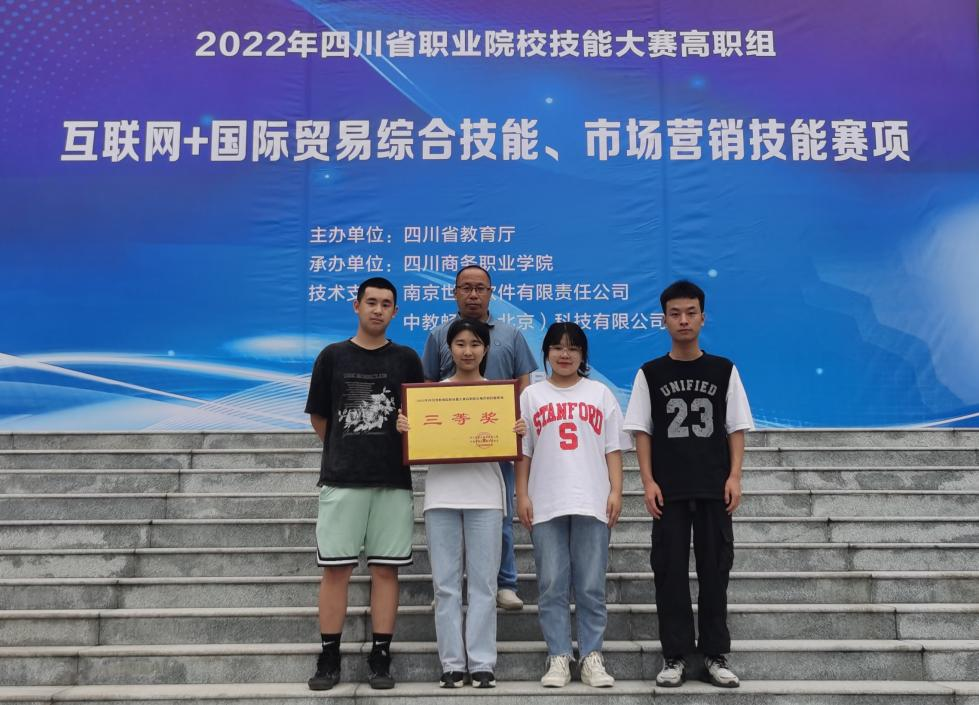 2022年6月16-18日,由四川省教育厅主办的2022年四川省职业院校技能大赛高职组市场营销技能赛项在四川省商务职业学院举行。文化商学院文化产业经营与管理、移动商务专业刘耀桧、聂思敏、谢梦蝶、张馥川四名同学组成的代表队参加比赛,经过激烈角逐,荣获三等奖,我院教师伍大勇获优秀指导教师。