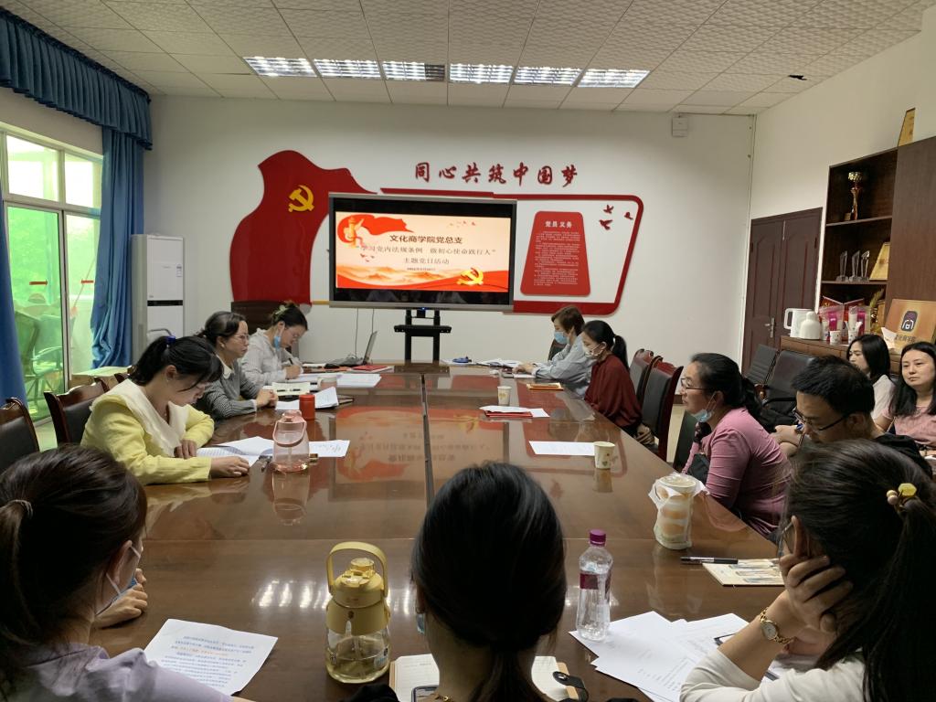 为深入学习贯彻落实党内法规制度,严明政治纪律、政治规矩,5月20日,文化商学院两支部联合开展了“学习党内法规条例,做初心使命践行人”主题党日活动。总支书记王维姝主持会议,全体党员参加。