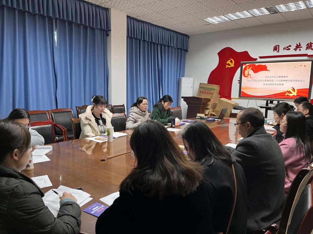 王维姝传达了习近平总书记在学习贯彻党的二十大精神研讨班开班式上的重要讲话精神。全体党员集体观看了警示教育片《“赶考”路上》,为党员上好廉洁教育“新年第一课”。伍大勇、肖群同志结合自己的工作实际交流了学习体会,表示将坚持“为党育人、为国育才”的初心使命,铆足干劲、真抓实干,以更好的状态高质量完成新一年的工作。