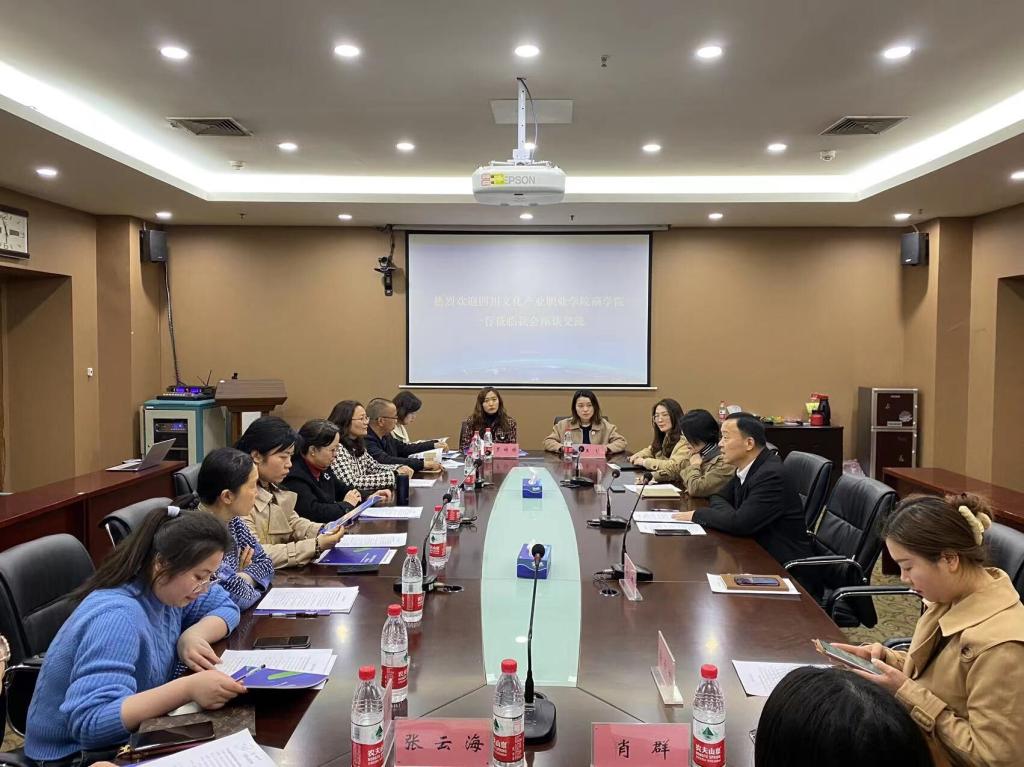 在参观了重庆市人才研究和人力资源服务协会后,双方进行了座谈。协会副会长兼秘书长熊荣军介绍了协会的运营情况、组织构架、近年来协会开展的主要工作以及未来发展规划。文化商学院党总支书记王维姝对协会热情接待表示感谢,介绍了学校、学院基本概况。双方就充分发挥各自优势,加大合作力度,共同做好高校毕业生就业工作,促进高校毕业生充分就业达成共识。