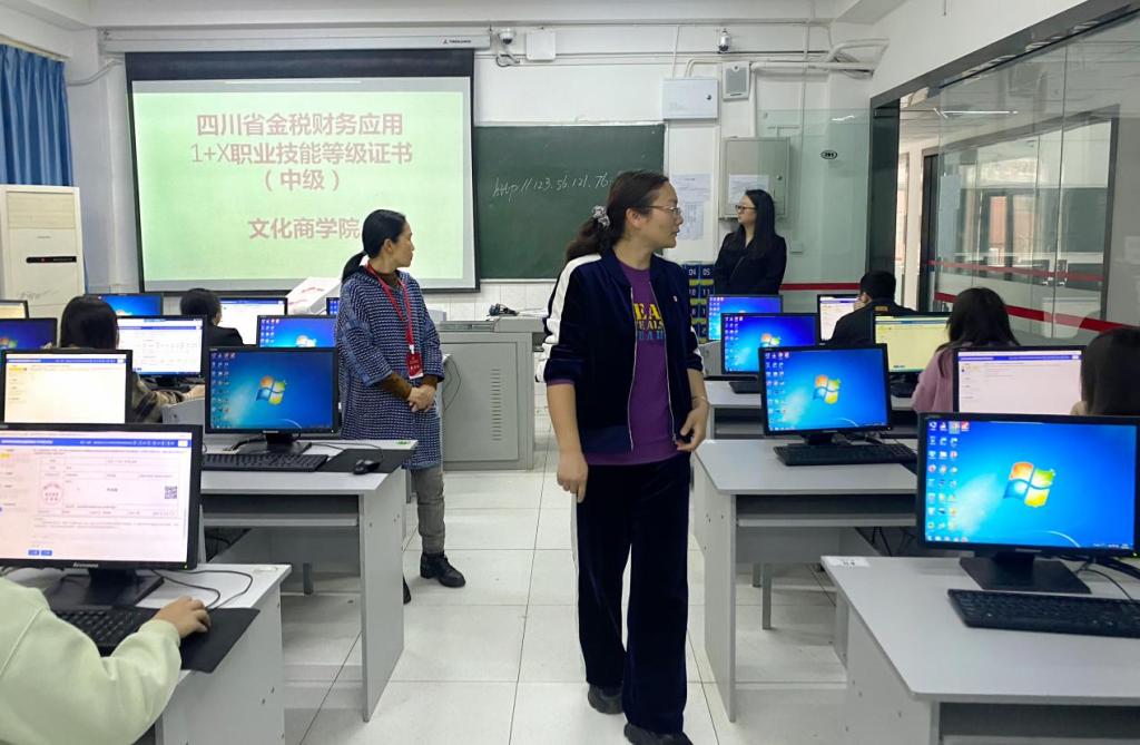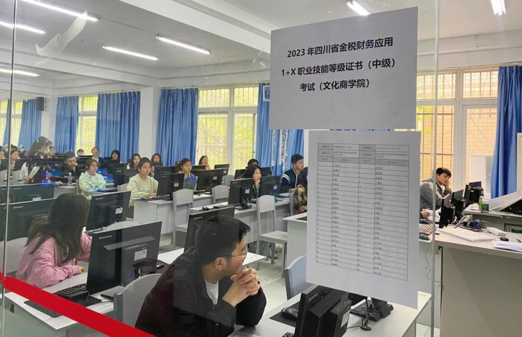 为了积极推动职业技能等级标准与专业教学标准有机衔接,岗位工作内容与课程教学内容融合,岗位能力与专业能力对标,2023年4月2日上午,文化商学院在第一教学楼考试中心201室顺利开展四川省金税财务应用1+X职业技能等级证书(中级)考试,共计44名学生参加考试。
