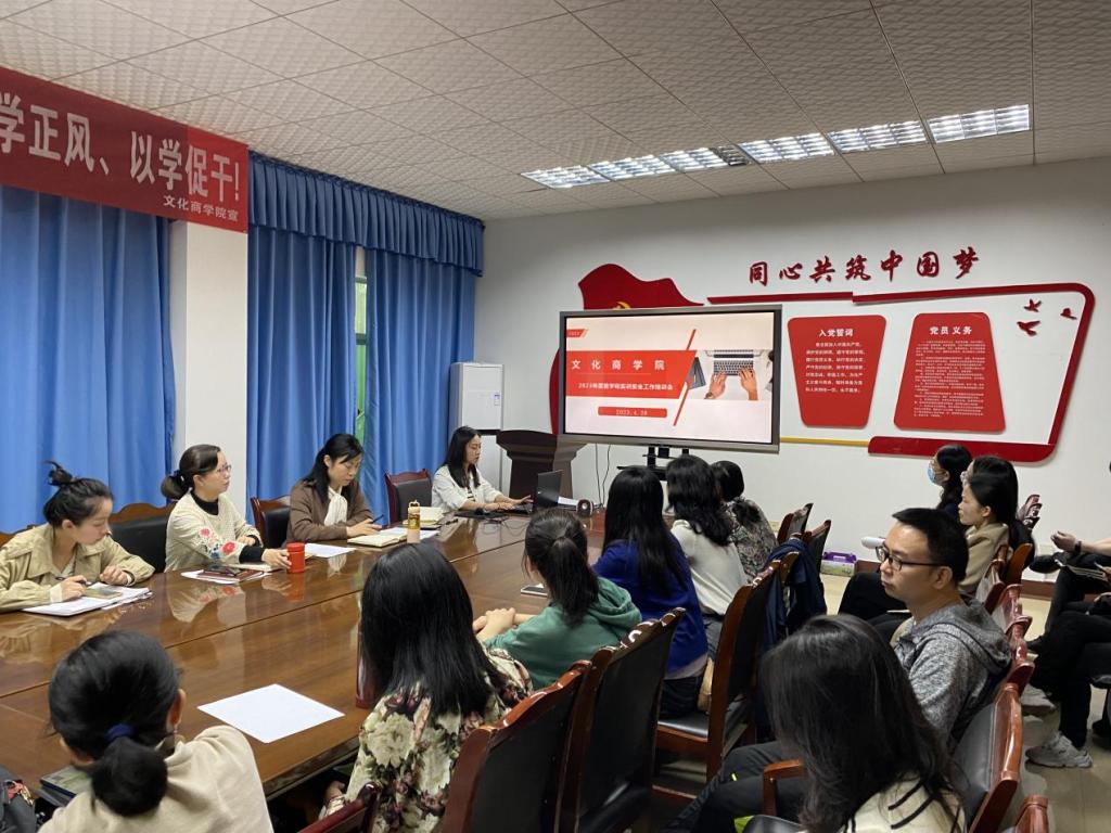 为强化全院教师安全意识,筑牢教学安全防线,确保教育教学工作安全有序进行,4月28日下午,文化商学院在温故楼三楼会议室组织召开2022-2023-2学期教学安全工作专题培训会。学院党总支书记王维姝、副院长曾兴及全体教师参加会议。