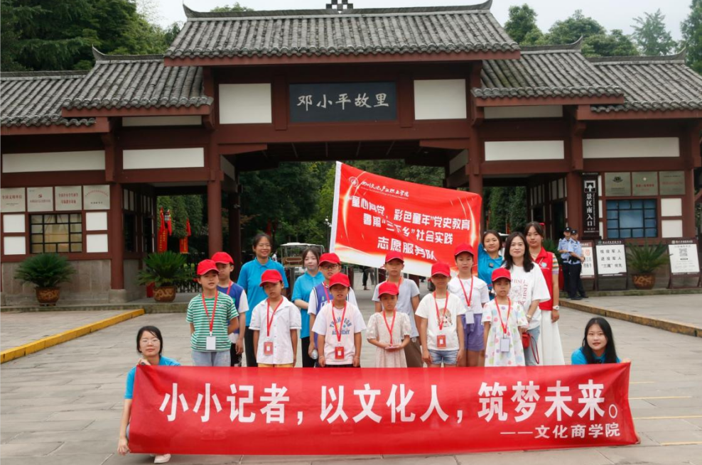 本次暑期“三下乡”活动围绕党史学习教育宣传这一主题,文经专业的学生精心策划一系列生动有趣的红色课程与活动。我校新闻专业学子面向当地社区青少年学生开展了新闻采访与写作的理论融合趣味游戏,培养业余爱好的“小记者”;志愿团队带领小记者采访官盛镇老党员及退役军人代表,慰问关心老党员、退役军人,访谈红色人物,共同重温革命历史。志愿团队还带领“小记者”前往邓小平故居,向他们讲述“春天的故事”,让他们做好“春天故事”的传播者。