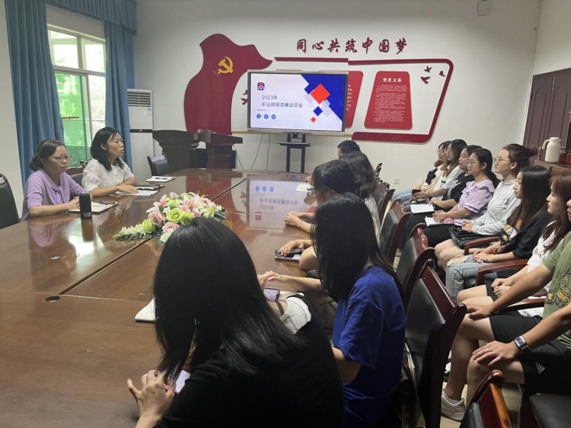 为提高人才培养质量,文化商学院以“岗课赛证”为抓手,积极备战2023年高职院校职业技能竞赛,于9月15日中午在温故楼三楼会议室组织召开2023年职业技能竞赛动员会,文化商学院党总支书记王维姝、副院长曾兴,专业主任、全体竞赛指导教师及参赛学生参加会议。