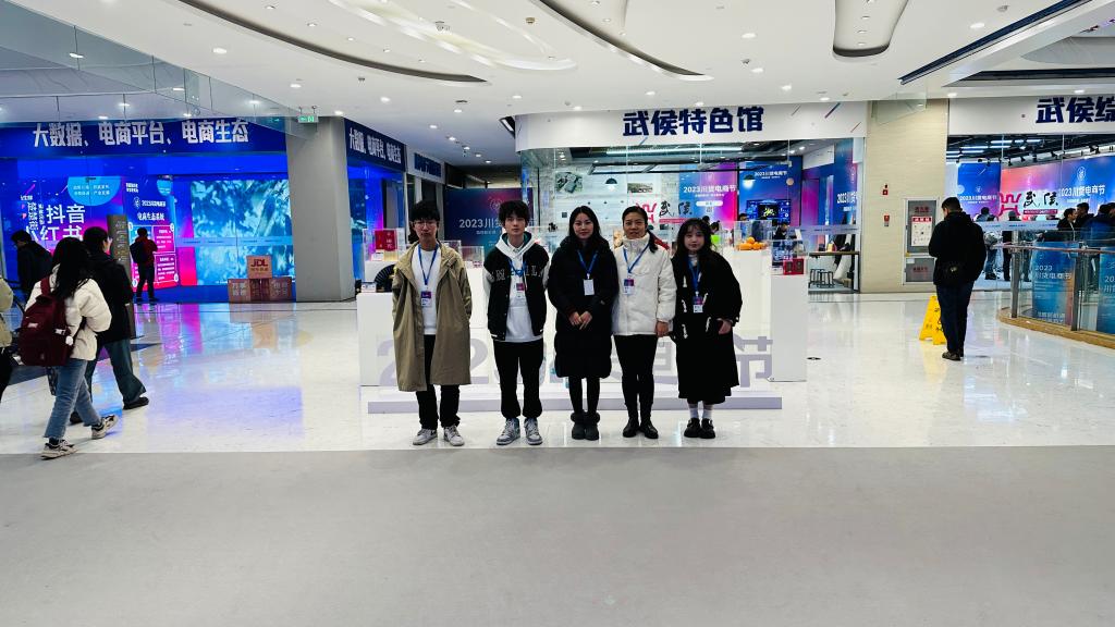 为了推进移动商务专业校企协同发展,2023年12月1日,文化商学院副院长曾兴和移动商务专业教师凌珂极带领移动商务专业学生参观省级电商新业态基地成都武侯区她妆电商产业中心,体验2023川货电商节的独特魅力。
