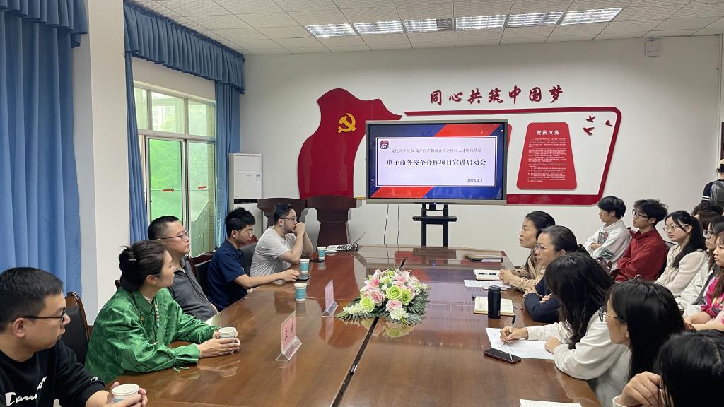 2024年4月3日,文产院产教融合校企协同人才孵化基地项目负责人周启兵携企业团队来我院开展电子商务校企合作项目宣讲启动会。文化商学院党总支书记王维姝、副院长曾兴、相关教师以及近五十名大二学生参会。