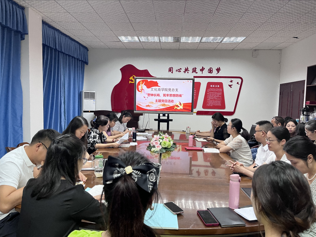 7月8日上午,文化商学院两支部在温故楼三楼会议室联合开展“警钟长鸣,筑牢思想防线”主题党日活动。全体党员参加。