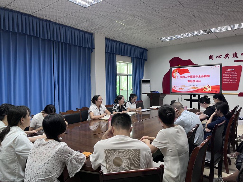 为深入贯彻落实党的二十届三中全会精神,深刻把握党的二十届三中全会精神的核心要义和科学内涵,文化商学院党总支于9月10日中午在温故楼三楼会议室组织召开专题学习会。会议由党总支书记王维姝主持。总支全体党员参会。